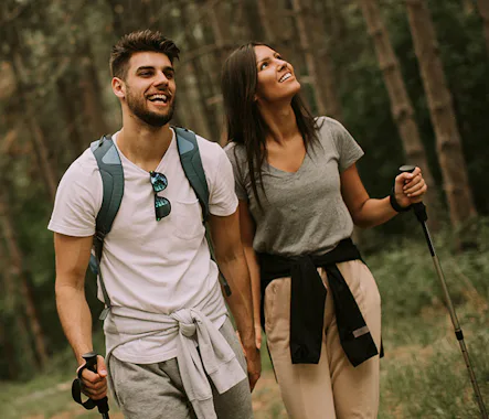 - Gratis-Verleih von Fahrrädern und Walking-Stöcken (E-Bikes gegen Gebühr)