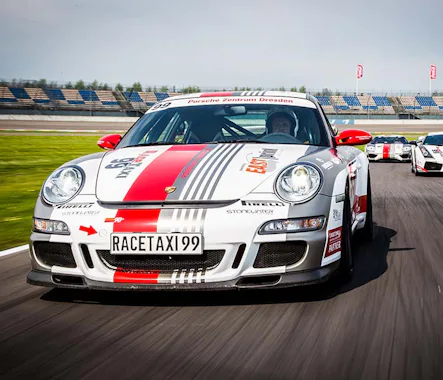 - In einem der 3 Sportwagen 2 schnelle Taxi Runden mit dem Profi