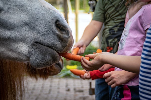 - Füttern und Streicheln der Bauernhoftiere (Pferde, Alpakas, Schweine, Hühner, Hasen und Meerschweinchen - ca. 1 Std.)
