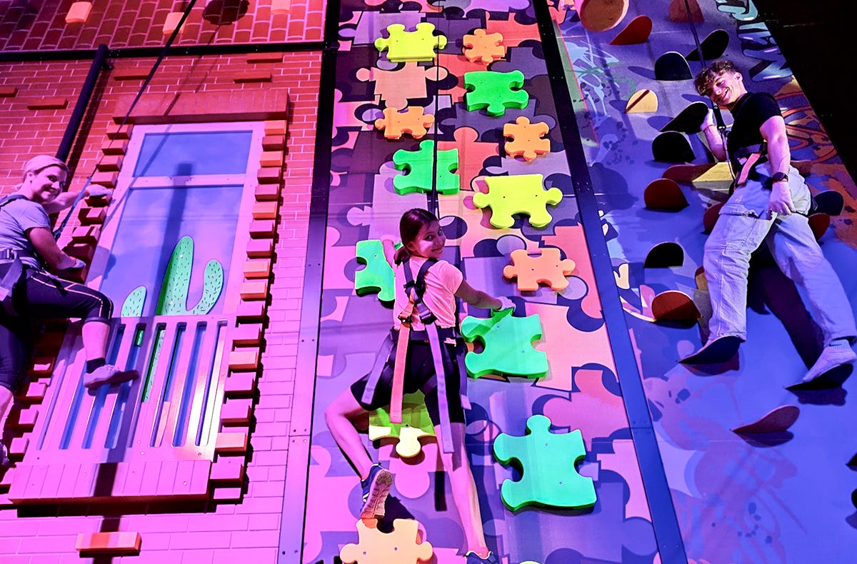 In der Fun Arena Berlin erwartet Dich eine farbenfrohe Welt des Erlebniskletterns, die Kletterspaß auf eine ganz neue Ebene bringt. Mit liebevoll gestalteten Kletterelementen wie einem leuchtenden Spinnennetz oder den fantasievollen Bambo-Bäumen bietet die Kletterhalle Berlin vielfältige Eindrücke für Körper und Sinne. Besonders eindrucksvoll ist der Bereich mit Schwarzlicht. Hier leuchten Wände, Strecken und Griffe in kräftigen Farben und verleihen jeder Bewegung eine ganz besondere Atmosphäre. Das Klettern in der Fun Arena verbindet Kreativität mit Bewegung und schenkt unvergessliche Momente voller Staunen. Wenn Du Dir eine lebendige Erinnerung schaffen möchtest, die noch lange nachklingt, ist dieser Ort genau das richtige Ziel für Deinen nächsten Ausflug.