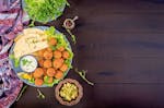 - Zubereitung von: Mezze-Trio aus Hummus, Baba Ghanoush & Muhammara mit frischem Fladenbrot, Falafel-Bällchen mit Minz, Joghurt und Granatapfelkernen, Lammkarree mit orientalischer, Chermoula und geschmortem Gemüse, Baklava mit Nüssen & Honig