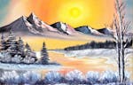 - Malen eines ca. 40 x 50 cm oder 50 x 60 cm großen Ölbildes unter professioneller Anleitung nach der Bob Ross ® -Technik