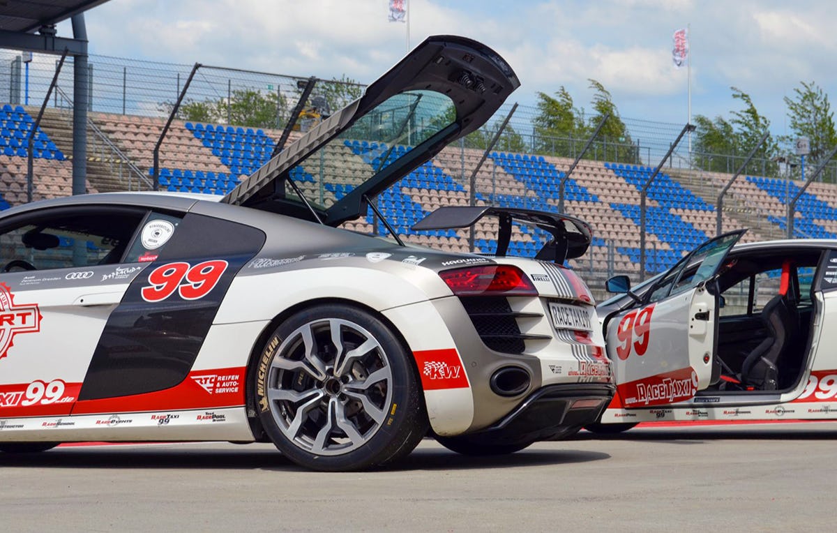 - In einem der 4 Sportwagen 2 schnelle Taxi Runden mit dem Profi